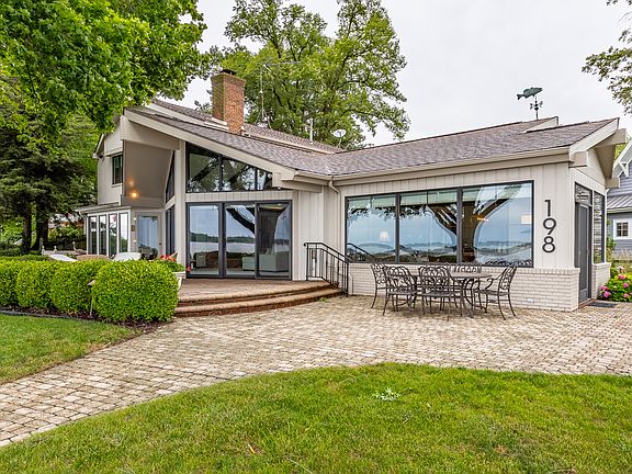 Rarely does an estate of this caliber become available on Lake Wawasee. Boasting 139 feet of frontage and 180 degree, unobstructed views of the lake, this is a property to be cherished for generations to come. Built in 1951 and having gone through extensive renovations in 1990, this property has been lovingly cared for and updated over the years while maintaining its original charm. Floor to ceiling windows, a vaulted ceiling and large fireplace can be found in the living room - the heart of the home. Updated kitchen features granite counter tops, Sub-Zero refrigerator, KitchenAid ice maker, two sinks and breakfast bar. The primary suite on main level showcases water views, plenty of built-in storage, a huge walk-in closet and large bathroom w/ heated floors. Upstairs, you'll find 4 large bedrooms, 2 full bathrooms and an additional room great for bunks, storage, home office, etc. One of the crown jewels of this property is the boathouse - covered boat storage w/ channel access keep your toys protected and out of the main house view. Upstairs are 2 more bedrooms, 1 full bath and a living room - with ability to sleep 8-10 in the boathouse alone! Finally, let's consider home's ideal location... The beautifully landscaped lot w/ flat elevation allows you to walk right out to your dock and enjoy the lake. Home is located on the east side of Wawasee - think gentle breezes and beautiful sunsets year-round. Because the home is on a dead end street, there is virtually no traffic (another major plus!). Pier 198 could be the perfect setting for your story for many years to come...