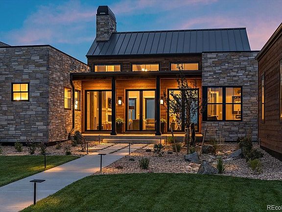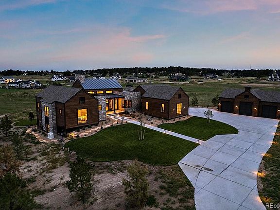 INCREDIBLE value with this IMPRESSIVE $240K price reduction! Picture perfect! This Restoration Hardware-inspired, remarkable custom home and outbuilding on over 1.5 acres in the coveted Fox Hill neighborhood has everything to offer! This better than new fabulous ranch walkout home has simply too many features to list: custom architecture by Godden Sudik, superior finishes by Nicholas Custom Homes, main floor primary suite with spa bathroom, dedicated office, open concept kitchen with luxury appliances and oversized island, multiple outdoor entertaining spaces including a covered deck with stone fireplace, main floor guest ensuite, completely finished basement with three additional bedrooms, three bathrooms, finished seasonal storage space, home gym/optional 5th bedroom, and safe room with vault door. The custom details for this home abound with meticulous detail and craftsmanship. Beautifully furnished with new furniture from Restoration Hardware, this spectacular move-in ready home will not disappoint. The incredible three car outbuilding is fully equipped for your workshop, toy storage, or room to play.  The new landscaping includes exterior and landscape lighting, an in ground trampoline, hot tub with cafe lighting, all poised to maximize the dedicated open space and unobstructed Colorado front range views. Additional features: 1G fiberoptic internet, whole home generator, solar shades on windows and doors in main home and outbuilding, new exterior landscaping with lighting, home security, all TVs and mounts, Google smart home system, whole home audio, hot tub, gas heaters and epoxy floors in main home garage and outbuilding, and cabinetry for extended storage in garage. Located in Fox Hill, Douglas County's hidden gem, the farm-to-table community provides an optional farm program where produce and meat options can be delivered to front doors on a weekly basis including events and farm classes at the original homestead. This one is a must-see!