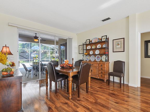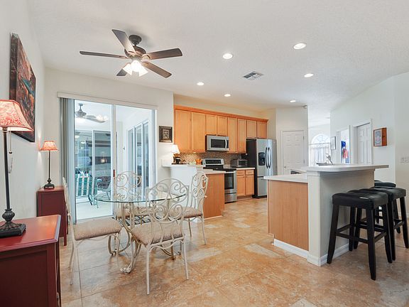 AMAZING BACKYARD!!!! Not a SCRAP of carpet to be found in this well maintained home. Great for ALLERGY PRONE families. All floors are either TILE or LAMINATE. As you walk into this sun filled home you will notice the quaint sitting area and spacious dining room with sliders to the OVER-SIZED LANAI. Continuing on you come to the large kitchen with BREAKFAST BAR and breakfast nook that also has sliders to the OVER-SIZED LANAI. Along with the living room that is wired for SURROUND SOUND. The SPLIT BEDROOM PLAN has two bedrooms and bath off of the living room with the Master being off the sitting room/dining room area. MASTER BEDROOM includes a SIZABLE MASTER CLOSET, sliders to the OVER-SIZED LANAI and master bath with soaking TUB and separate SHOWER, dual sinks and linen closet. The second bath also includes a door to the OVER-SIZED LANAI. The community is on CRESCENT LAKE. Community features include two DOCKS & A BOAT RAMP. JET SKIS AND BOATS are allowed on this lake and it is part of the chain of lakes. This a great home just waiting for a new family to love.