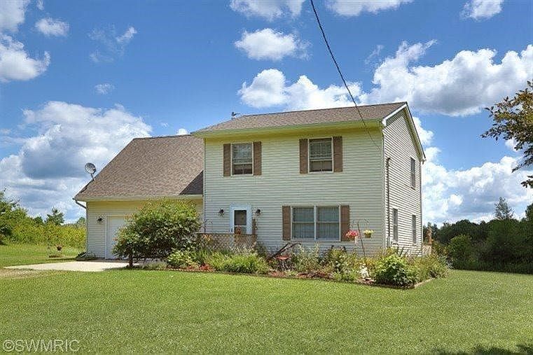 YOUR OWN PRIVATE OASIS! Nature lovers paradise! Wildlife Galore, yet only 2 miles to Harper Creek Schools and 4 miles to the mall! Situated on a private 2 acre lot surrounded by 120 vacant acres, this 1500 Sq. Ft. vinyl sided 2 story home offers living room with cabin style laminate flooring, kitchen with oak cabinets, dining area with sliders to a deck and 1/2 bath down. 3 large bedrooms, (one bedroom above garage currently used as a den) with great closet space and full bath up. 2.5 car attached garage, full poured wall basement. Original owners. Roof shingles new in 2009, furnace new in 2010. Gorgeous sunrises and big sky starry nights await you!.