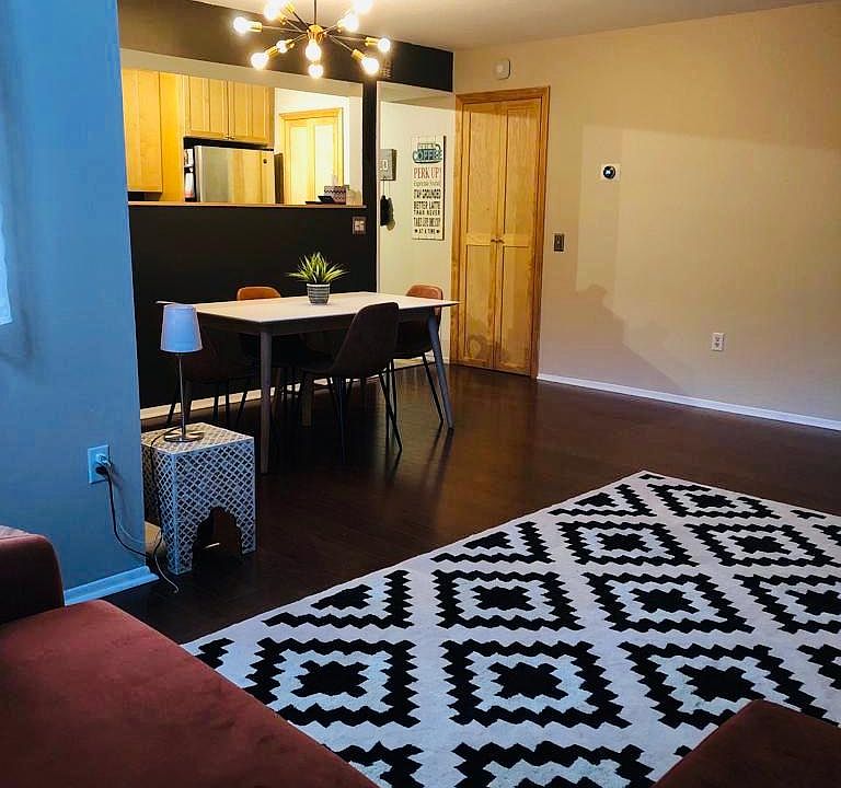*SHORT TERM 6 months lease* Up for rent is a stylish, modern one bedroom/one bath apartment in desired Hickory Ridge complex in Columbia a few blocks from Howard County General Hospital. Apartment is on the main floor of a two story townhome with separate partitioned sliding barn door upon entry into the house. Top floor is occupied by another tenant (with keyed entrance) and no sharing of amenities. Your main floor apartment has engineered wood floors throughout and is equipped with a full kitchen, laundry room, open concept living area/dining area, one bedroom and bathroom. In your bedroom is a walk-in closet complete with installed shelving/organizer. The living room has lofty high ceiling with cathedral windows above the fireplace. From the living room and kitchen are sliding doors that open up to a fenced in patio perfect for morning/afternoon tea or entertaining your guests. Assigned parking space is under a carport located next to the home in a cul de sac. Looking for tenant with strong credit and rental history willing to enjoy living in this apartment and treating it like their own. 6 months lease and immediate availability. Security deposit is $1,000 and application fee is $40 per adult applicant. First month's rent and deposit due at lease signing. Utilities (water, electric and wifi internet) and parking are $175 per month. Absolutely no smokers or pets allowed. Also no party house tenants as this is a residential, family complex. *NOTE that the unit has one thermostat shared by both this unit and top tenant. Meta: Columbia, Ellicott City, Howard County, Columbia town center, hickory ridge, lake, howard community college, Rt. 32, Rt. 29 Absolutely no smokers or pets allowed. Also no party house tenants as this is a residential, family complex. *NOTE that the unit has one thermostat shared by both this unit and top tenant. Thermostat settings can be controlled via app.