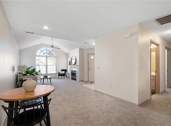 Fresh paint, new carpet & LVP welcomes you home to this highly sought-after Palisades at College townhome. Beautiful natural light. Vaulted living room ceilings w/ gas fireplace. Front patio pairs perfectly with your morning coffee! ONE level living & maintenance free! Community offers clubhouse, swimming pool & library. 2022-05-15