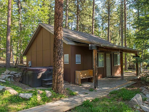 Ol' Wistlevess Lodge is a 4 bedroom (2NTC) cabin with 2 bathrooms. The 2 NTC bedrooms are in the loft and have windows, no closet. Currently the loft has 3 additional beds for extras sleeping. Two bedrooms on the main level allows this cabin to sleep 14 people. Stained concrete on the main level, Anderson 400 series windows, James Hardi siding all attribute to the low maintenance. The detached 24' x 24' heated garage has plenty of room for all your toys. With the circle drive and approximately 30' x 30' parking area this place has it all in a small package. The covered garage porch is perfect for grilling, sitting outside in the rain or snow and just enjoying what the Hills have to offer. With the proximity to Rec Springs, the trail system, Terry Peak and Deadwood, makes Ol' Wistlevess the perfect cabin. It has 100+ year old real barn siding on the wall of windows wall , living room wall and dining room wall.