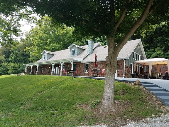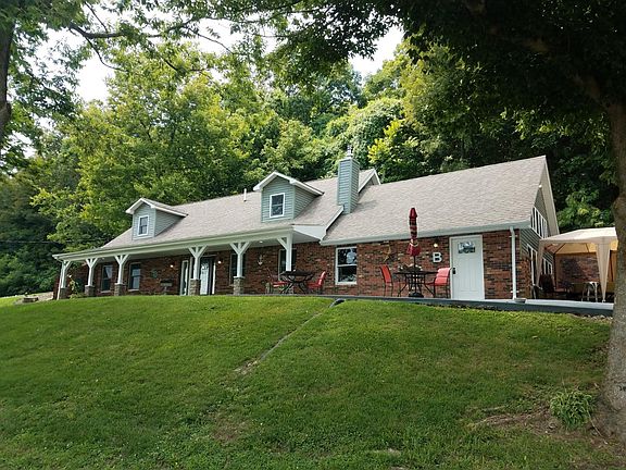 Home Extraordinaire! You will ooo and ahhh over the details in this home. Enter into the great room with a soaring galvanized corrugated metal ceiling, tongue/groove walls, custom ceramic tile rock floors, recessed lighting, and free standing wood burning stove. The kitchen features beautiful custom cabinetry with easy close doors and drawer, an island/breakfast bar, and ceramic tile floors. All appliances are included! A formal living room has a working fireplace and windows looking out to the Ohio River. This home has a main floor master bedroom/bath and laundry. The master bath a double vanity sink, open concept closet storage, and the ultimate walk-in tile/stone shower. Upstairs is a 2nd full bath and two large bedrooms, one with an outside entrance to a side deck with river views. This property has two parcels being sold together totally nearly 7.5 mostly wooded acres.