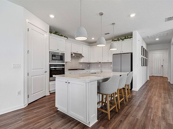 Welcome to your dream home in the highly sought-after North River Ranch community in Parrish, Florida! Built in 2023 by Pulte Homes, this beautifully upgraded Mystique model offers 3 bedrooms, 2 bathrooms, a separate office, and a spacious open-concept design—perfect for modern living and entertaining. Step inside to find luxury vinyl plank flooring with a wood-look finish flowing throughout the main living areas, tile flooring in the bathrooms, and plush carpet in the bedrooms for added comfort. The expansive living room features a coffered ceiling and large sliding glass doors that open to a covered lanai with no rear neighbors, offering privacy and a peaceful outdoor retreat. The designer kitchen is a true showstopper, featuring stainless steel appliances, a modern backsplash, quartz countertops, tall wood cabinetry, a built-in oven and microwave, cooktop with range hood, and a large center island with bar seating—ideal for casual meals or hosting guests. The primary suite offers a luxurious escape with an ensuite bathroom, dual sinks, a modern walk-in shower, private water closet, and a generous walk-in closet. Two additional bedrooms share a full bath, and the dedicated office space provides flexibility for remote work or a hobby room. A full laundry room with washer and dryer is also included for your convenience. Even the garage got an upgrade with Swisstrax modular flooring, offering a sleek, durable finish — perfect for car enthusiasts, a home gym setup, or a workshop space. Community amenities are second to none and include 3 resort style pools, clubhouse, fitness center, game room, sports field, dog park, miles of scenic walking/biking trails, and playgrounds. With a vibrant social calendar and tons of community events you will experience community living at its best. Conveniently located just minutes from top-rated schools such as Barbara A. Harvey K-8, with their brand-new upper Campus right in the community and Parrish Community High School! Minutes from the recently opened HCA Florida North River Ranch Emergency and Market Walk with access to coffee shops, dining options, Publix Super Market, dentists and more! Easy access to I-75 and Highway 301. Only a short drive to the city of Tampa, St. Petersburg, Sarasota, and the beautiful Gulf Coast beaches. Don’t miss your opportunity to own this like-new, move-in ready home—schedule your private showing today!