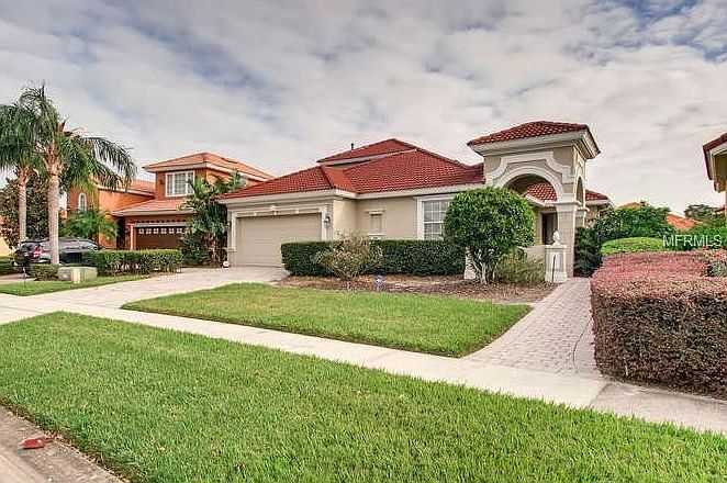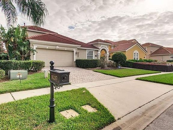 Former model home in gated community, this one's a beauty! You'll note the decorator touches throughout incld. wallpapered baths, custom window treatments, matching linens in master bedroom and decor cutouts in the upstairs bonus space complete with built in wall unit. Open floor plan is tiled excluding carpeted bedrooms, office and bonus. There's formal living and dining separating into the kitchen with stainless appliances, Corian counters, gas stove, breakfast nook and family room with built ins. 1st floor master suite offers dual closets and the master bath holds double sink vanity, large soak tub, and double sized walk in shower. All overlooking your covered lanai and screened enclosed pool. A private office space includes custom cabinetry and double pocket doors for privacy. Community offers playground, tennis and pool and clubhouse. Lawn and Pool service provided.