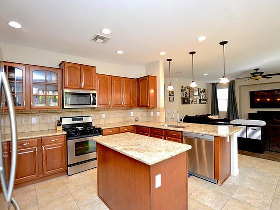Gorgeous 3400 sq. ft. 5 bedroom home in Desert Valley. 5 bedroom 3 bath plus a Loft, with upgrades galore. Open floor plan, Gorgeous eat-in kitchen with 42' cabinets, stainless steel appliances, upgraded countertop, island and breakfast bar. Kitchen opens to the family room that looks out to a private oasis with a pebble tec pool with a swim up bar! 18' Tile in all the right places, blinds and ceiling fans throughout, a dramatic spiral staircase leads to an amazing master suite with a huge walk-In closet, master bath has a 2-way fireplace! One bedroom and full bath downstairs. Covered patio, private pool. Three car garage. N/S exposure. * Pool & Landscaping Service Included * Super nice neighborhood and close to everything!! Available for a mid- July move in.
