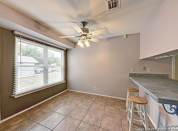 Great home with access to Leon Creek Trail System! Recent exterior/interior paint, NO "popcorn" ceilings or carpet! Open floor plan, high ceilings and a fireplace. Master bedroom has 2 walk in closets plus updated bath including granite counter and shower! Guest bath includes recent shower. French door access from living and master to covered patio plus side 18x18 deck! Large lot w gate to trails. NISD schools. Close to Valero, UTSA, Fiesta Texas, La Cantera, The Rim, USAA, Medical Center. Come see it!