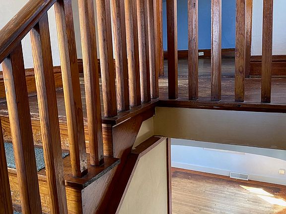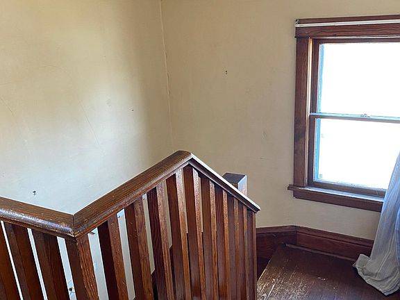 Large front porch with lots of natural light. Front entry that leads you into the living room and the eat-in kitchen. Upstairs offers you 2 bedrooms and a bathroom. Hard wood floors throughout the home, open curved staircase is remanence of the old farmhouse.