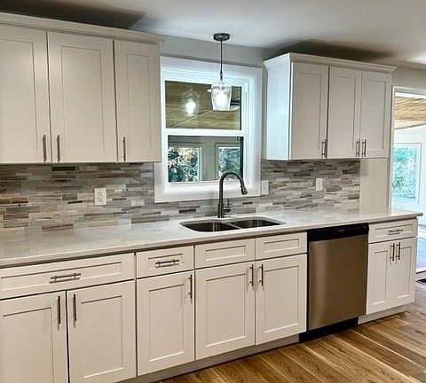 Remodeled brick ranch w/ full basement in sought after NW Hickory located close to Downtown & Lake Hickory. This home offers easy maintenance & style! Updates to the home includes new windows, vinyl plank hardwoods throughout, septic pumped, chimney serviced, interior/exterior paint, light /plumbing fixtures, gutters, landscaping, and more! You will love the bright & open concept kitchen/ dining area featuring new cabinets, SS appliances, quartz counters, pantry, & backsplash. Off the kitchen enjoy the all weather room over looking the wooded backyard. The spacious living room has a wood burning fire place & lg. windows. All 3 bathrooms updated w/ new tiled showers, vanities, toilets, ect. The 3 bedrooms on main level are of ample size w/ the primary having a private full bath & walk-in closet w/ washer/dryer hook up! Downstairs find a huge den/family room w/ fireplace, office area, finished room perfect for a 4th bedroom, half bath, 2nd laundry room! Basement garage w/ workshop space.