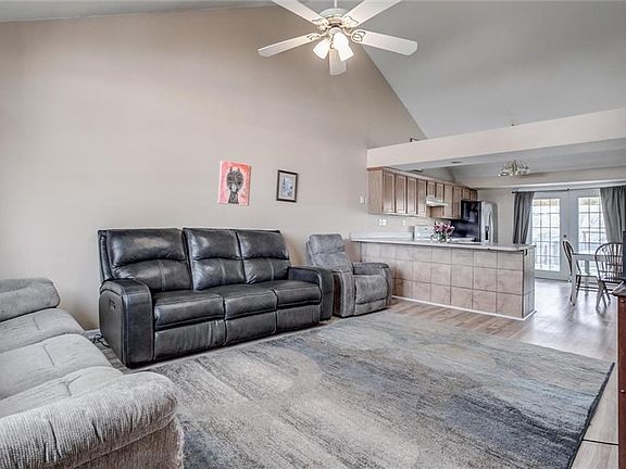 Open the French doors and enjoy the private, covered back patio in this true ranch home. The living area is as open as it gets! The kitchen counter overlooks the living room and with the vaulted ceilings throughout this open space, this living area is expansive! There is room for everyone and begs for entertaining! Set the food out on the counter and cheer for your favorite team. What about the mess? No worries! With new Luxury Vinyl Planks clean up is easy peasy. The 2 car garage has plenty of built-in shelves & peg board for storage. The backyard has a privacy fence to keep your fur baby safe. HVAC & water heater are 3 & 4 years old. AC and furnace have a warranty. Roof installed in 2017.