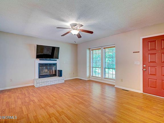 Nestled on a quiet cul-de-sac in the popular neighborhood of Sandybrook, this 1138 s/f townhouse features 2 bedrooms/2 baths, great outdoor spaces, and an ideal location in coveted Middle Sound Loop. New heat pump in 5/2021, 4-year-old roof, and stainless-steel appliances are only 3 years old with refrigerator included. Living room boasts wood-burning fireplace, and mounted TV included. Both bedrooms are spacious and master features a walk-in closet. Laminate flooring throughout for easy maintenance. Enjoy relaxing on the back porch overlooking a spacious yard with a buffer of trees for privacy. This is an excellent property for a first-time homebuyer or savvy investor! Located in the coveted Ogden School district and only minutes from Mayfaire Town Center, and only a few minutes to Wrightsville Beach, you'll want to call today to schedule your appointment before this one is gone!