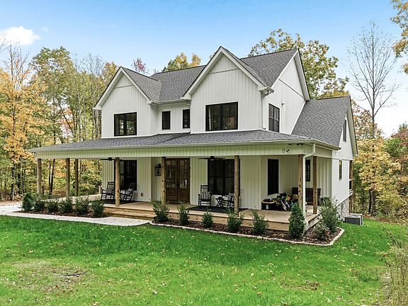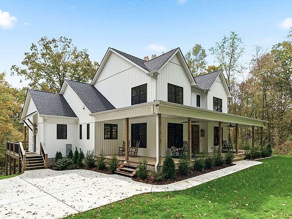 This beautiful modern farmhouse feels like your own private escape. Tucked away in a peaceful, wooded setting with no visible neighbors, this home offers that hard-to-find combination of modern style and complete tranquility. Immediately upon entering, you’re greeted by an open-concept kitchen and living space bathed in natural light. Every detail feels fresh and current — from the sleek finishes, walk-in pantry and large island made for gathering, this house feels like a HOME! Step right out onto the spacious covered deck and take in the quiet, surrounded by trees and fresh air.