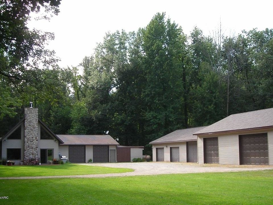 Bronson off the road log cabin. Open concept with vaulted ceilings. Outside wood burner. 2 barns. 30x40 pole barn and a 36 x 40 pole barn.