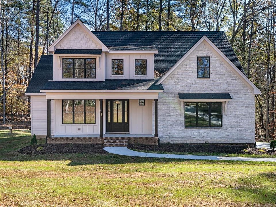 Steven Hayes custom new construction sits gracefully on 1.2 acre wooded & private lot! Modern Farmhouse architecture boasting an extraordinary floorplan: 1st floor owners suite w/true luxury bath, custom tile shower, free standing tub & large WIC connecting to custom laundry. 1st floor guest/In-Law suite w/adjacent full tiled bath, large 3rd and 4th bedroom up as well as bonus (all with large custom walk-in closets) & additional 740 square feet unfinished for potential theater, gym, game room or additional suite/2nd master. Gourmet kitchen features exotic granite counter, S/S appliances, subway tile backsplash, large center island, tons of custom cabinetry w/self closing drawers/doors & huge custom walk-in pantry. Open to large family room with custom fireplace, huge glass sliders to covered porch overlooking private wooded yard. Oversize (2) car garage, drop zone, tankless HWH, sealed walk-in crawl and flat lot that begs for pool and additional detached garage. Ready for occupancy!!