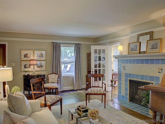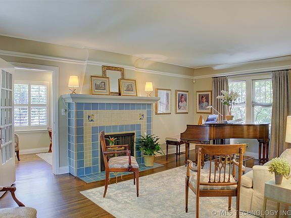 The Kitchen has been updated in 2019-2020 with high end appliances, Taj Mahal granite, Galley Sink and hot tap. There are 3 bedrooms, all on the second floor. The Primary Bedroom has been added and reconfigured to be a spacious bedroom with a sitting area, a cast stone fireplace and a large Primary Bath with double sinks, separate shower and tub, leathered Taj Mahal countertops and two walk-in closets. The Laundry Room is conveniently located on the 2nd floor near all the bedrooms. The Hall and Powder Baths have also been updated with a lovely designer touch. The partial basement has been transformed to a workout room with mirrors and special flooring (not included in house square footage). A charming, elegant home that is walking distance to the Gathering Place, Utica Square, Woodward Park, Brookside, Cherry Street and a short drive to Downtown Tulsa!