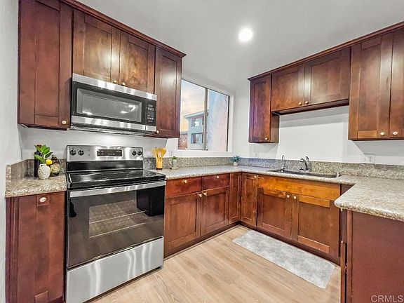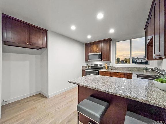 Very nicely updated 2 bedroom condo in central Mission Valley. This unit has an updated kitchen with newer cabinetry, granite countertops, and updated appliances. LVP flooring throughout the home (except bathroom) and the bathroom has been tastefully updated. The complex features include a built-in pool just steps from the unit and a BBQ area for entertaining. Just minutes from the 8, 163, Fashion Valley mall, and more!