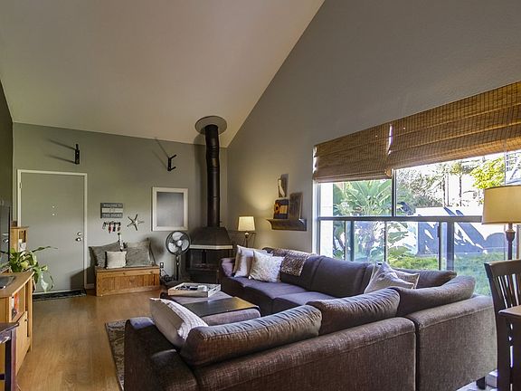 Premier location, end unit 2 Bedroom Condo in Bay Park! Open floorplan includes dramatic vaulted ceilings, wood burning stove, Pergo floors, neutral color palette, ceiling fans, stainless steel appliances & updated fixtures. Large attic space perfect for additional storage. Well maintained complex w/ pool & BBQs. Gated parking with 1 covered & 1 uncovered space plus bonus storage closet. Water included in HOA! Central location near shopping, dining, trolley, freeway & USD! Perfect for first time buyer!