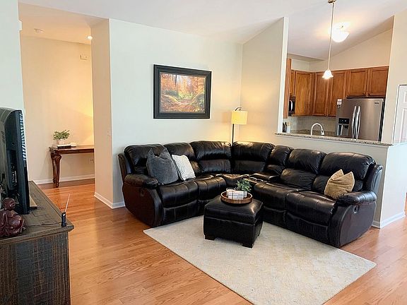 Beautiful updated end unit ranch! Spacious open floor plan with vaulted ceilings. All new stainless steel appliances and granite counter tops. Each bedroom has a large walk in closet. 2 1/2 car garage with workbench. Sliding glass door out to patio. Separate storage room included. Exercise room, large pool at clubhouse short walk away. Lots of walking paths and pond views. Plenty of windows for sunlight. All appliances included. Email for info: kufs1@aol.com or call direct 630-303-8436. Will offer realtors 2-1/2 percent if they bring in a buyer.