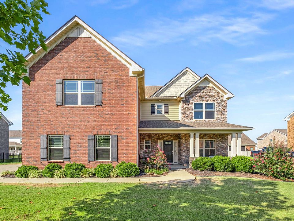 Welcome to this beautiful all-brick two-story home in the desirable Liberty Valley neighborhood in Murfreesboro! Featuring an open, inviting floor plan with elegant and durable laminate flooring throughout the main living areas, along with sleek stainless-steel appliances and granite countertops in the spacious kitchen, you will love entertaining here. The living room, anchored by a stone fireplace that is sure to impress, will be a cozy place to make memories with family and friends. With 4 bedrooms, 3.5 baths, a spacious bonus room, and a formal dining room currently used as a library, this house offers the potential for a home office, craft room, or flex space. Enjoy relaxing on the covered front porch, grilling on the back patio, or taking advantage of the community pool in this friendly neighborhood. The home has been well-maintained with yearly chimney sweeps, HVAC service, and pest control, providing peace of mind to the next owner. Located in the highly sought-after Walter Hill and Siegel School zones, this property also offers unmatched convenience - just minutes to I-840, The Avenue, multiple Greenway trailheads, and Siegel Soccer fields. With its prime location, thoughtful updates, and inviting spaces, this home is the perfect blend of style, comfort, and convenience. Schedule your private showing today!