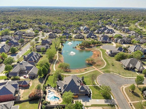 Welcome to 1124 Green Wood Glen, a one of a kind escape in Edmond's Oaktree Park. With views of the pond, trails, and Oklahoma's unbelievable sunsets, this house will feel like a resort that you get to call home. Boasting over 4,000 square feet this home ensures you have room for everyone. Whether entertaining in the fully appointed kitchen, enjoying a pleasant summer evening on the patio or using one of the four large bedrooms for guests over the holidays, this home has it all! The main floor features an owner's suite, additional guest suite and study. Upstairs are two additional bedrooms each with it's own bath. TWO bonus rooms! One could easily be a theater room while the other features a built in bar area and views over the pond that stretch all the way to Deer Creek. Outside you will enjoy the covered patio with wood burning fireplace, heated saltwater pool and spa. With fresh paint, updated lighting and new floors there is nothing you need to do but move in! Welcome Home! 2020-05-08