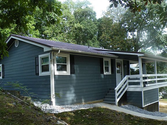 Large covered porch with mountain view in a private setting. Just a short distance to shopping and restaurants. One level with deck and ramp at rear entrance. All new appliances and cabinets with granite countertops. Kitchen includes an antique pantry cabinet, 30" sink center/dishwasher, micro hood, smooth top electric range, and side by side refrigerator with water/ice in door, and a Samsung washer/dryer frontloading combo. Plenty of room to add a portable island or large table. Totally repainted & has refinished oak hardwood floors. The Single garage/ workshop has a new automatic door. Hardie Board siding, new windows, & blinds make the interior snug for low heating costs. Hall coat closet, bath linen closet, toilet topper, large bedroom closets give good storage. Each bedroom can accommodate a king size bed. City water included. Central Heating and Air Conditioning. we would approve a 6 month lease. It was for sale but has been taken off the market and is now available for leasing.