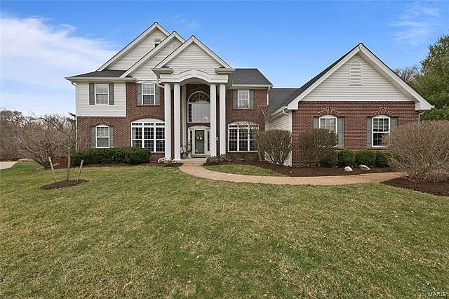 IMPRESSIVE FORMER DISPLAY with a massive 1 acre back level and fenced in! These don't come around often! Stunning 1.5 story w/2 story great room with gas fireplace & floor to ceiling built ins. Open spindled staircase leading upstairs with a gorgeous view! Hardwood floors flows throughout the main level. French doors lead you into a fabulous private study with custom crown molding. The gourmet kitchen has stainless steel appliances, granite counter tops, desk, separate laundry room with sink. Main floor master suite w/bay window, large master bath w/double sink, whirlpool tub, separate shower & 3 separate closets. St. Louis Closets installed the large master bthrm, laundry room and bdrms upstairs. 3 car side entry garage. Profess. landscape lighting throughout yard. Excellent curb appeal on a cul-de-sac! LL offers 2 walk outs, & is ready for your finishing touches. Lower patio has large peaceful pond w/waterfall and accent lighting. New roof 2012. MUST SEE!