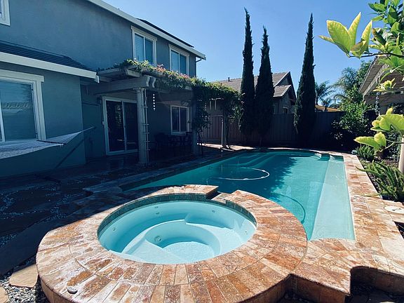 This stunning 5-bedroom home with bonus rooms is now available for rent! Featuring fully upgraded amenities, it boasts scratch-resistant hardwood floors, high-speed internet readiness (1GB Ethernet cabling in every room), built-in ceiling speakers, and outdoor speakers for entertainment. The spacious master bedroom includes his-and-her walk-in closets, and the luxurious master bath features dual sinks, a jacuzzi, and elegant Italian tile with a decorative medallion. The kitchen comes equipped with high-end stainless steel KitchenAid appliances, including a stove and oven, as well as a premium LG dishwasher. Enjoy year-round comfort with dual-zone AC/heating controlled by programmable thermostats. Solar panels cover all electricity costs (producing over 10MWh/year) and include a Tesla EV charger in the garage. The home offers ample space for a home office, playroom, or personal gym. Step outside to your private oasis with a beautifully landscaped backyard featuring an outdoor pool, perfect for relaxation and entertainment. Conveniently located near BART, freeway access, and schools, this home is ideal for modern living. The owner covers landscaping and HOA fees. Electricity is primarily covered by a solar system, but the tenant is responsible for any excess usage as well as gas (average monthly cost for a family of four is $25 $45). The tenant is also responsible for water, waste disposal and pool service (pool service waived if tenant prefers to have pool inactive). Pets are allowed but may require an additional security deposit. The property includes a 3-car garage and on-street parking. Non-smokers only. Tenant is also responsible for their own washer, dryer and refrigerator. A one-year lease is preferred, but other terms can be negotiated.