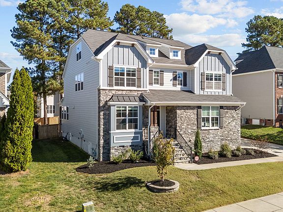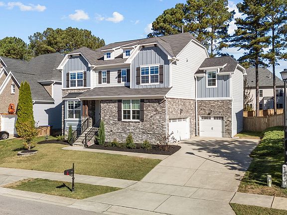 1124 Litchborough Way is a beautiful 5-bedroom home in Wake Forest, built in 2015 and thoughtfully enhanced with a bonus room and a modernized kitchen in the last couple of years. Located in the sought-after Northampton neighborhood, this almost 4000 square foot residence offers a blend of elegance, comfort, and functionality. The home features spacious bedrooms, with 2.5 bathrooms, and a 3-car garage, all situated on almost a quarter of an acre lot. Gourmet kitchen remodeled in 2023 with custom cabinetry, quartz countertops, and updated appliances including a gas cooktop and range hood. Open-concept living areas* with coffered ceilings, hardwood floors, and a gas fireplace in the family room. Main floor bedroom or office for flexible use. Luxurious owner's suite* with dual walk-in closets and a spa-like bath. Laundry conveniently located on the upper level. Finished bonus room above the garage added in 2022 and a finished the third floor —perfect for a media room, gym, or guest space. The second floor opens up to a loft. Additional features include a butler's pantry, walk-in kitchen pantry, entrance foyer, and ample storage throughout. This property combines timeless design with modern upgrades, making it a standout choice for buyers seeking space, style, and convenience in Wake Forest.