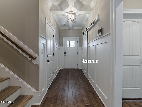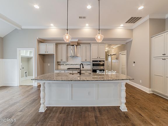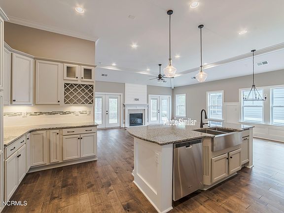 Stunning new construction home in Sea Trail's newest section, Byrd Watch- featuring sidewalks, street trees, and street lights. This custom plan by Riptide Builders is one-of-a kind with a water-view lot! The charming exterior includes Hardie Lap & Board & Batten Siding w/brick accents. Enter the foyer from the spacious front porch, and you'll find stunning 5' wainscoting and a cross-coffered ceiling. The Great Room features a vaulted ceiling with 36'' vent free fireplace with custom mantle w/ shiplap. Right off the Great Room is a tiled & screened rear porch, leading to the 12x12 concrete patio- perfect for grilling and taking in water/golf views!! In the kitchen you'll enjoy a spacious island, quartz countertops, cabinets w/ soft close doors & drawers. under-cabinet lighting and designated pantry. Appliances include gas cooktop, dishwasher, and wall oven/microwave combo in a stainless-steel finish, and a direct vent hood. The Owner's Suite comes w/ plush carpet, presidential tray ceiling w/ double crown molding, ambient rope lights, and recessed can lighting. We've added practical features too like USB power outlets & a large WIC w/ melamine shelves. Spa-like bath in the Owner's Suite includes fully-tiled zero-entry shower. You'll find plenty of storage in the Laundry Room with cubbies over the W/D and a custom folding-table. This home is HERS rated for energy efficiency & is equipped w/ a tankless W/H. Included included landscaping package complete w/ irrigation system w/ drip lines!