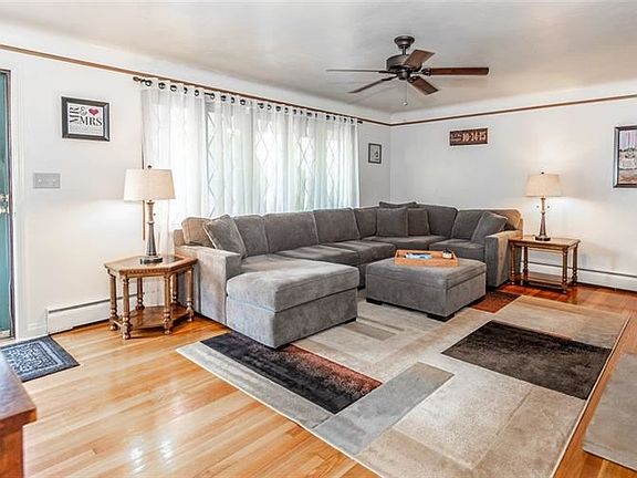 This solid brick raised ranch sits on a street close to everything. The sun-drenched living room is anchored by a fireplace book-ended by built-ins. You will love the gleaming hardwood floors that run throughout. The kitchen features updated stainless steel appliances and a breakfast bar ideal for morning coffee. From there move into the dining area which has sliding glass doors that open to your spacious back patio- plenty of room for the grill and a table and chairs. The long back yard has a fire pit, great to unwind at the end of the day. Three bedrooms and a full bath round out the main level. The finished downstairs serves a multitude of functions including game room and office, plus a new half bath. There's also plenty of storage, laundry area, and access to the two-car garage! Check out all this home has to offer and make it yours today!