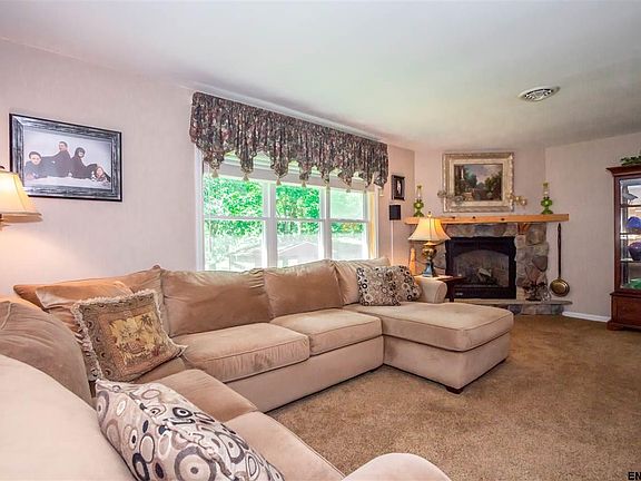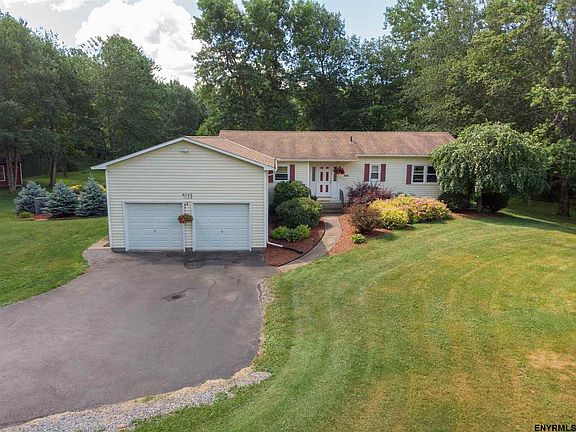 Serene setting for this amazing ranch on 5.6 acres w/pond. Stone encased gas FP, LR, DR, oversized kitchen w/SS appl, lg. island, laundry room & addt'l lower level living space w/FR, BA, workshop & utility rm. Newer windows & hot water htrs, gas heat, central air and so much more! Supplementary outbuildings and patio overlooking nature's surroundings make this a perfect family country estate. USDA eligible. Award winning Guilderland schools. Close to Albany.