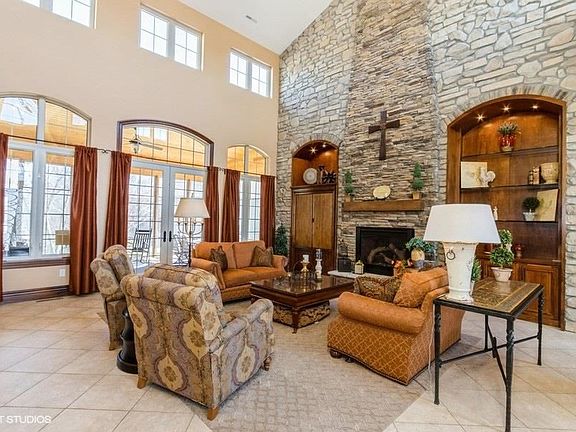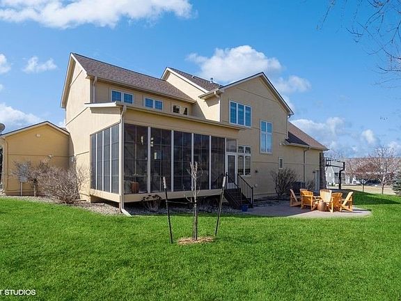 Very carefully planned custom built home in 2013 by Klosterman Construction in popular Cardinal Ridge located close to the elementary school, shopping and major highways with great attention to detail! Make a visit and you will be greeted by the dramatic 22 ft. ceilings and impressive floor to ceiling stone finished wall in the living room along with a cozy fireplace and built-ins surround! There is an elegant formal dining room with a coffered wood designer ceiling. Enjoy the gourmet kitchen that boasts dura supreme Knotty Alder wood cabinetry, premium appliances, granite counters, and pantry. Convenient 1st floor study or extra bedroom. Relaxing pine plank 3 seasons room with cathedral ceiling perfect for quiet evenings overlooking the wooded backyard. Fantastic drop zone/locker area with built-in desk plus a large laundry room with utility sink and laundry chute. 3 generous sized upper level bedrooms including a luxurious 15x22 primary suite with 2 walk-in closets and an all tile shower/jetted tub combination. Tremendous lower level family room with game area and adjacent walk behind wet bar. Lovely stamped concrete patio with a gas firepit, perfect for evenings with the family! Heated 3 car garage with floor drains. Upgraded fiber cement board siding and stone accents; High efficient 3 zone HVAC system. 24 notice to show, please.