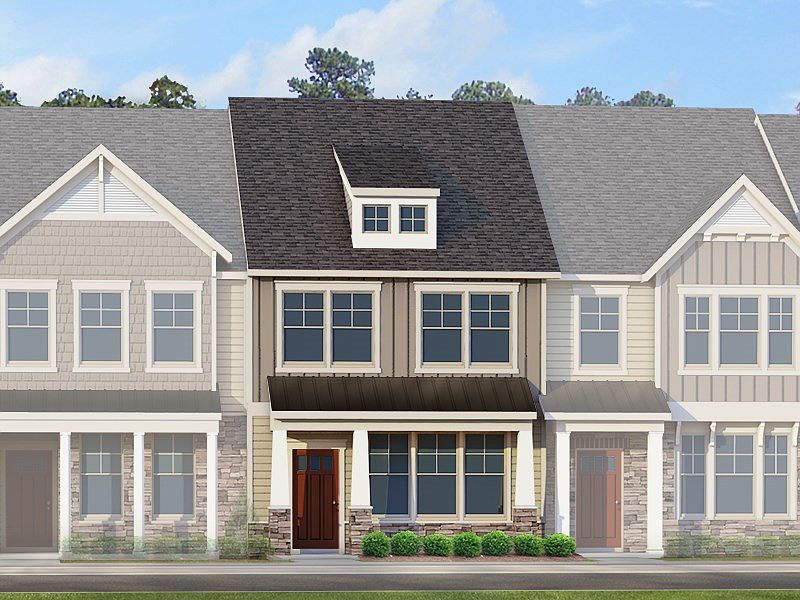 Carrington A floorplan. Kitchen features 36" maple cabinets, granite counter tops, tile backsplash, stainless steel Kenmore gas range, dishwasher & microwave. Hardwood floors throughout first floor. Beautiful open floor plan. 2nd floor features a Master Suite with tray ceiling, large ceramic tile shower and dual vanities, plenty of closet space and a secondary bedrooms. Pet park in neighborhood, 3.5 miles of walking trails, great access to HWY40, HWY55, RTP, Duke University & Southpointe Mall.