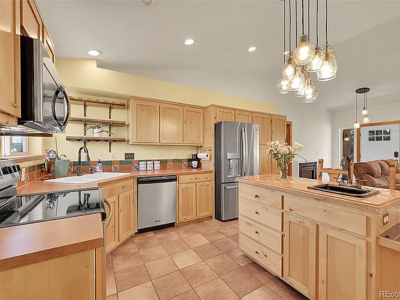 - Description: Tile Countertops, Tile Flooring, Center Island With Lowered Space, Stainless Steel Appliances, Access To Back Deck