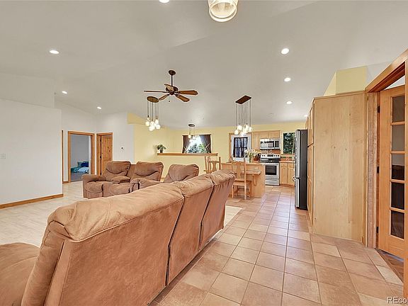 This nicely appointed, ranch-style gem is located in the heart of Calhan. With 3 beds, 2 full baths, and an open floor plan, it’s all about easy living. You’ll love the laminate wood floors, wide-open kitchen, great room, and dining space – perfect for hanging out or hosting. The primary suite? Oh yeah, it's got a good sized walk-in closet, plus an oversized, free-standing tile shower and a soaking tub that’s calling your name for those "treat-yourself" moments. The kitchen’s looking sharp too, with stainless steal appliances, Spanish tile accents, and a handy island with a prep sink and extra seating – perfect for entertaining your crew! On the opposite side of the house, there are two more spacious bedrooms and a full bath. The laundry room is conveniently located off the garage entrance, complete with a utility sink to keep things tidy. But wait, there's more: the full unfinished basement with rough-in plumbing is just waiting for your personal touch and adds additional space to fit your needs. Outside, enjoy the metal roof, concrete driveway, mature landscaping, a composite wood deck for chilling and ease of maintenance, and beautiful mature trees for that peaceful vibe. The oversized doors throughout the home are ADA-compliant, making it even more accessible. This one's got it all. Within minutes to the quaint town of Calhan and Highway 24 for easy access to Peyton amenities or Colorado Springs.