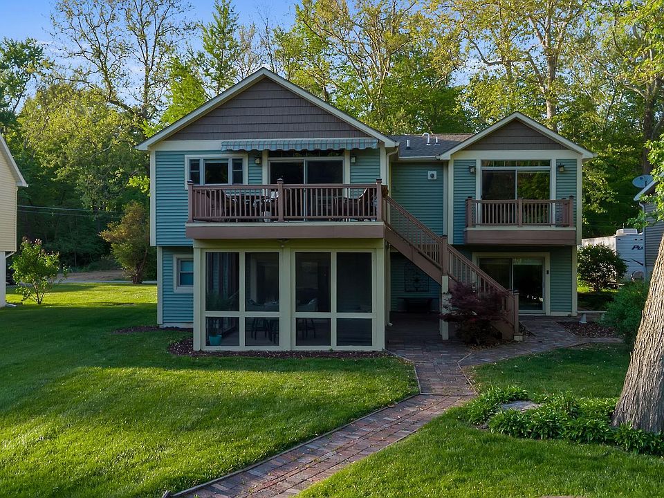 Enjoy lakefront living on Lake Freeman! This beautifully landscaped waterfront home offers 2 bedrooms, 2.5 baths, and an open-concept kitchen, living, and dining area. The stunning master suite features a walk-in closet. Enjoy your morning coffee on the waterfront balcony with serene lake views. Relax on the screened-in porch or take in the scenery from the waterfront pier with a temporary jet ski lift. Additional highlights include a partially finished basement, oversized 2-car garage, storage shed, and a whole-house generator—perfect for peace of mind at the lake!