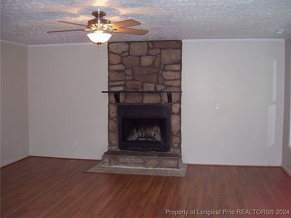 Recently remodeled maint. free home in great n'hood close to schools, shopping,parks & Ft.Bragg.It has a spacious living rm w/modern clg fan & a stone fireplace w/ceramic tile hearth.The foyer has ceramic tile as does the kit.,baths,closets. The living rm, dining rm & hall are wood laminate, carpet in the BRs. The kit. has custom cabinets & upgraded countertops w/blk & SS appliances.Good sized MBR w/priv bath,lg fenced yd w/brick patio. *Pet rent $25 per month