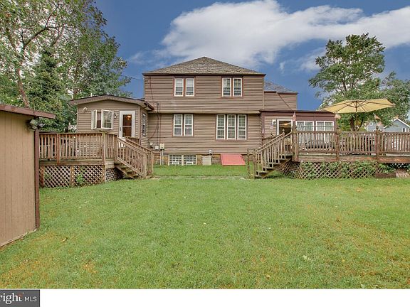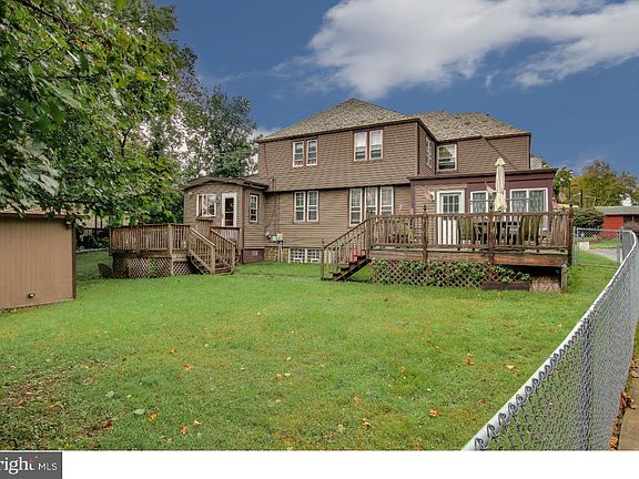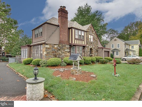 Spectacular Tudor sitting on a great cul-de-sac with only a handful of homes and river views! With the beautiful stone exterior, brick chimney and slate roof, this property has a ton of character. When you enter the foyer of the foyer of this home, you can't help but to notice the incredible woodwork. The foyer is filled with hardwood floors that run throughout the entire home, hand crafted doors and trim and an oak staircase that continues the workmanship to the 2nd floor. Passing through the foyer you will find an oversized living room complete with a wood burning fireplace that is a definite focal point. The tremendous amount of windows in this area allows for great natural sunlight and a breeze off the river which is just a stones throw away. Just off the living room you will find a sun room and the dining room and the kitchen is located in the back right-hand corner of the home. Both the sun room and the kitchen have separate decks extended off the back which creates great additional space for parties and family gatherings. The kitchen has a large amount of cabinet and countertop space, along with an area just off the kitchen that can serve numerous functions. Wine area, wet bar, quaint little morning room. There are a lot of options with this space. The 2nd floor of this house is finished with 3 bedrooms and one full bath. The main bedroom has a nice seating area as you enter and the entire second floor outside the bathroom has hardwood floors. As previously stated there are two decks off the back of this home, but there is also a large fenced in yard that backs up to a creek that comes in off the Delaware River. This is a very rare opportunity to own a single family dwelling in Bristol Borough in one of the most desirable areas in town.