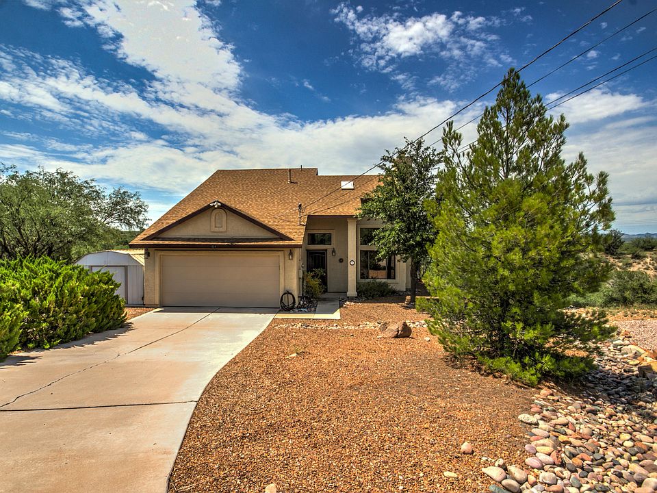 Perched atop a beautiful hillside lot you will find a fantastically upgraded three bedroom, two bathroom home. The downstairs master bedroom is located on the main level, two bedrooms are upstairs, one of which has a bonus room/den/exercise room with it's own air conditioning. Enjoy the log fireplace in the living room and the professionally remodeled kitchen and bathrooms. Outside is a sparkling pool with a covered patio space and mountain views from the additional rear covered patio. Need room for your toys, there's RV parking, too! This one won't last long, call for your private showing today!