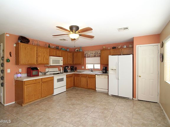 Excellent location! Great home in sought-after Sundance area of Buckeye. Close to schools, parks, shopping, restaurants, and freeway access ensuring a lifestyle of comfort and convenience. Energy efficient A/C and water heater replaced in 2023. All appliances included. Great end lot, no rear neighbor. Entertain guests or simply unwind in the tranquil backyard featuring low-maintenance artificial turf and view fence, providing unobstructed vistas of the surrounding natural beauty. Newly installed front landscaping with drip system. Enjoy the convenience of a large loft area, perfect for a home office, media room, or play area. New ceiling fans throughout. This house comes complete with solar! Ceramic tile on the main floor with carpet in bedrooms/loft. Large laundry room is a bonus.