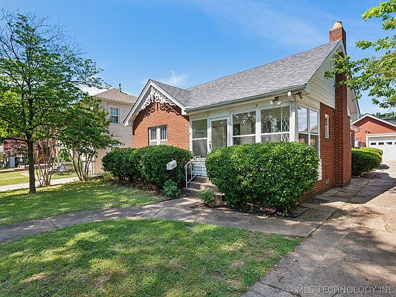 Charming full brick Midtown bungalow! Great enclosed front porch, cozy living room with fireplace, formal dining, kitchen with nook, main floor laundry, 3 bedrooms. Original hardwoods throughout, granite in kitchen, HVAC 5 years, ROOF 3 years. Backyard yard and detached garage. Refrigerator, washer, dryer all stay. Wonderful street and neighborhood! Close to TU, Mother Road, restaurants, & shops.