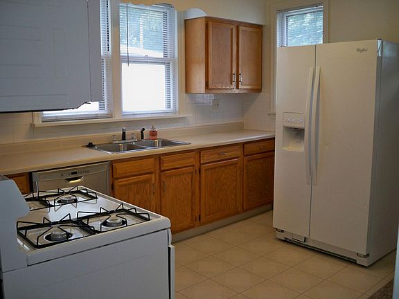 This home features downstairs a spacious Living Room, Dining Room and Office/Den with Cherry Laminate flooring. Kitchen with Vinyl flooring, oak cabinets, newer appliances, over-the-range microwave, gas range, Side-by-side refrigerator with ice maker/water dispenser, dishwasher, disposal and pantry. Upstairs has 2 Bedrooms with ceiling fans and newer carpet, plus skylight in Master Bedroom. 1 Bath upstairs with separate tub and shower. Washer/Dryer hook-ups in basement. 1 Car detached garage. Nice Deck out back off kitchen plus an enclosed front porch. Security lighting both front and back. Natural Gas Heat and Central Air. NO SEC-8, NO SMOKING. and NO DOGS. Cat OK with Add'l Pet Deposit Required References and 1 year Lease Required. Deposit $925 For an appointment to see please call Tenant pays all utilities and maintains lawn, NO SMOKING, NO SEC-8 and NO DOGS 1 year lease required.