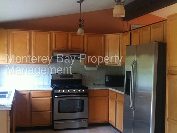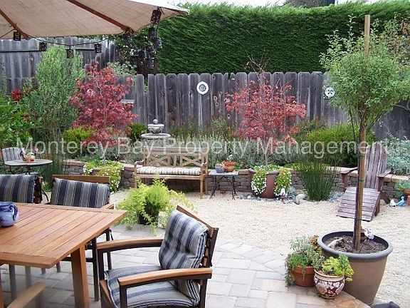 LEASE PENDING This lovely and modern three bedrooms, two bathrooms, single-level home at 1124 San Lucas Street in Seaside, for $2,795 per month. The property is non-smoking and will be offered unfurnished. This nicely maintained home, in Seasides sunbelt, shows pride of ownership throughout. The living room has beautiful hardwood floors and high ceilings with exposed beams. There is a large picture window that looks out onto the front yard which features attractive hardscape and a drought tolerant garden. Stucco and tile hearth wood burning fireplace is perfect too cozy up by. There are tile floors throughout the open dining room leading into the kitchen. Dual sliding glass doors bathe this space in natural light and lead out onto the backyard. The backyard is a private garden oasis and useful extension of the living space. There is a raised paver stone patio, pea gravel, flower beds, landscape lighting, and an outdoor fireplace; it's an ideal space for relaxing and entertaining. So that you may spend your time enjoying the outdoors, on-going gardening service is included in the rent. The kitchen features tiled countertops and plenty of cabinets for storage. The dual sink basin has a retractable hose faucet. Stainless steel appliances include dishwasher, GE Profile four burner gas stove, Allure exhaust fan, and double door refrigerator with water dispenser. Two carpeted bedrooms, one with built-in closet, the other with high ceilings. The hallway bathroom features tiled floors, granite counter sink vanity with an overhead decorative light fixture, and a tiled shower over bathtub. There are hardwood floors in the master bedroom which also has vaulted ceilings with track lighting and dual closets. There are tiled shower stall and long sink vanity in the master bathroom. One car garage features a built-in workbench for tools, space for a second refrigerator and plenty of storage space. Washer and dryer hookups are available. Additional off-street parking is available on the elongated driveway. Please note the owners will self-manage this home after the tenants have moved in. Small pet may be considered, upon approval and $500 increase of security deposit. $2,795.00 security deposit The best way to view the property is through Rently.com Contact us to schedule a showing.