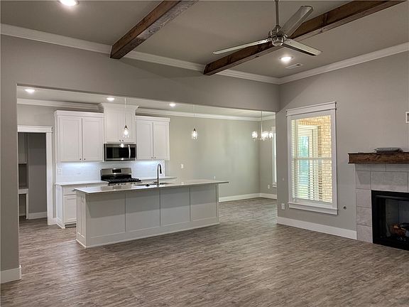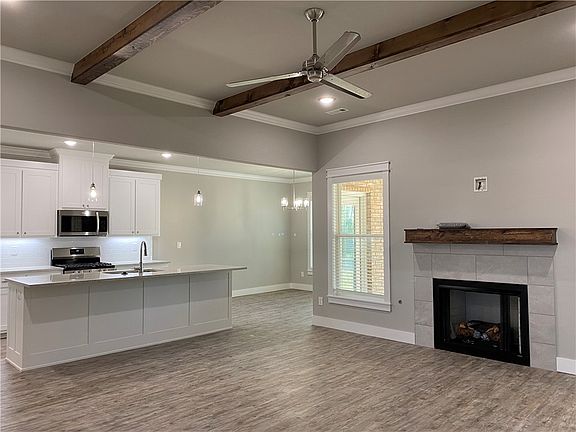 There are lots of extras in this beautiful 4 bedroom home! This homes features an open floor plan, upgraded trim package, 3 cm granite counters, built-in cubbies, walk in closets, soaking tub and covered porch. The popular wood look vinyl flooring is throughout the home except wet areas that have tile. Privacy fence, blinds and gutters are standards in all the Seay Construction homes. Hazelton Heights is conveniently located to the top rated Pea Ridge Schools. Neighborhood amenities to include playground, pond, ball field and pavilion! This home qualifies for 100% financing via RD loans. Taxes not yet determined.