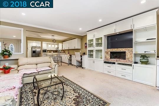 Remodeled Monterey. Kitchen has granite slab counters and backsplash. White cabinetry, SS appliances, and SS overhead Range Hood. Cabinets extend into dining and living room. Built-in entertainment center with fireplace. Two desk areas. Updated bath has large shower, w/d, granite counter. Recessed lighting in all rooms and all new solid doors, dual pane windows, crown molding, smooth ceilings. Two deck/patios, to enjoy fresh air. Very light and bright. Carport close and has new cabinets.