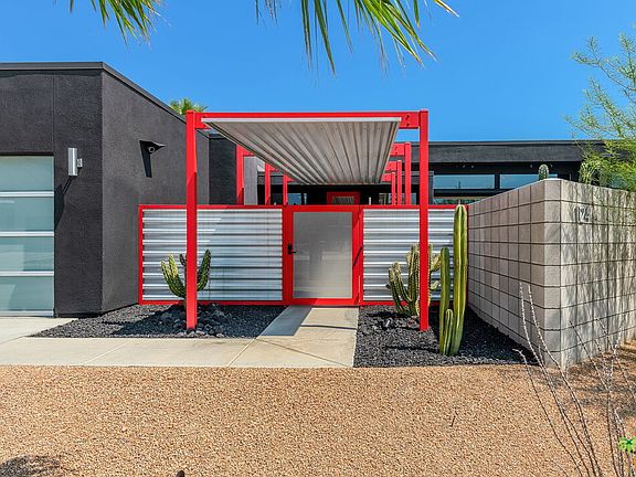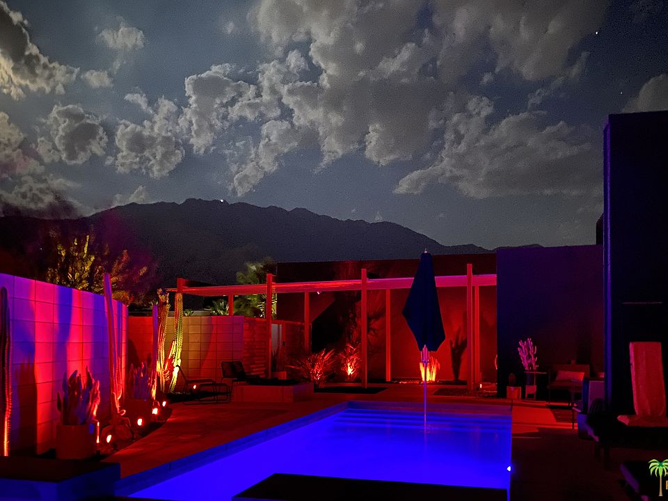When people say "it has all the bells and whistles" they must of been talking about this house. The recent upgrades on this home feature every comfort you can imagine. Positioned at the end of a quiet cut-de sac, this home has been reimagined in to a striking contemporary heaven. With direct access to the entertaining area at entry, the area features retractable, remote controlled 13ft awnings, misters, a saltwater pool and spa with a solar thermal system for heating and LED color changing bulbs for added effect. This lighting is a feature throughout the home too, with track lighting and high quality LED can lights that are controlled via WiFi and also change colors to suit whatever mood you're in. Designer pendant lights from Perhacs Studio are featured in the living areas, bedrooms and bathrooms. Even the landscaping gets a dose of colorful light for a dramatic look against the mountains. Other upgrades include Black sisal carpet and Hunter Douglas remote control shades in all bedrooms, black designer door handles throughout and an EcoWater water softening system, that puts electrolytes and minerals back in to your filtered water, very handy for hydration in desert living! Feel secure in your home, and have peace of mind when you're away with the Nest IQ security systems, Nest video doorbell and Wi-Fi door locks from Yale and Nest. This property is ready to go for move in, and has the potential for rental income. Complete with high ceilings, an open floor plan and the custom lighting throughout, you need to see this property to believe just how good desert living can be.