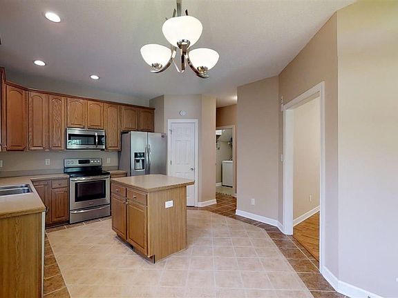Meticulously maintained home has large master bdrm w/custom wood shelving in closet & laminate hardwood. Separate shower/ garden tub. Nice size laundry rm 1st floor! 2 more bdrms plus bonus w skylights upstairs. 2 story entryway. Laminate wood flring throughout most of 1st flr. Kitchen has ss appliances, walk in pantry, island & tile flring. Gas Fireplace in living rm w vaulted ceiling. Loads of natural light. Garage has utility sink & built in shelves w/tons of storage options. Beautiful fenced in yard.