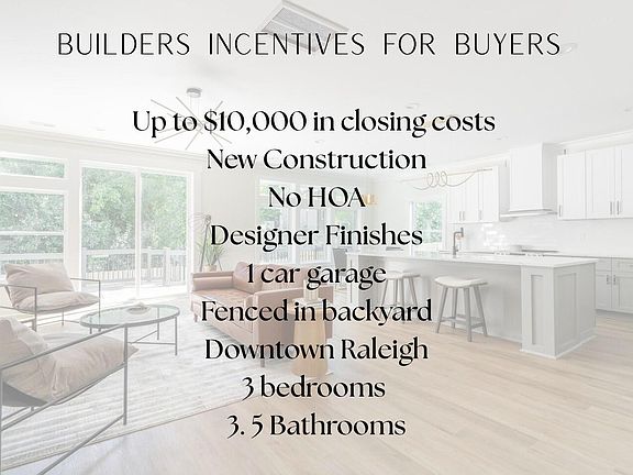 $10,000 Toward Closing Costs — Limited Time! Step into a home where modern design meets downtown energy. Tucked just minutes from Raleigh's vibrant core, this newly built residence pairs architectural precision with everyday comfort. The open-concept layout is drenched in natural light, anchored by a chef's kitchen with quartz countertops, premium stainless appliances, and a bold, oversized island made for connection. A custom fireplace framed by built-ins adds warmth and artistry to the living space. Upstairs, the primary suite becomes your private escape — spa-inspired bath, walk-in closet, and elevated finishes throughout. Two additional ensuite bedrooms ensure everyone has their own haven, while a flexible loft opens to a private balcony — ideal for a home office or quiet unwind. Designed for the way you live now: upstairs laundry, dedicated dog nook, fenced backyard, expansive deck, and attached one-car garage. Every detail balances luxury with low maintenance, giving you more freedom to enjoy life downtown. And right now, the seller is offering up to $10,000 toward closing costs — a rare opportunity to buy down your rate or simplify your move-in. With its modern lines, thoughtful details, and unbeatable location, this isn't just new construction — it's your invitation to experience the best of Downtown Raleigh living. Schedule your private tour today.
