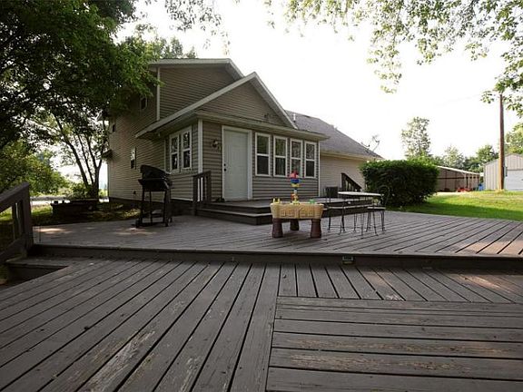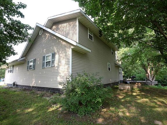 Just minutes from town is this spacious 4 bedroom home. It is situated on 1.25 acres and backs up to woods with a creek to the south. The deck is very spacious and has lighting. Outside is a large 2 car carport and 2 sheds with electric. Lots of parking. Inside you will find a home with living and family rooms, dining room, kitchen, huge walk-in pantry, bath, laundry and master suite on the first floor. Upstairs is a loft, 3 bedrooms and an additional full bath. There are loads of closets in this home and many extras such as 2 skylights, heat lamp in the master bath, some updated bathroom vanity tops, faucets, garbage disposal and a new back door that is being installed. This home is on rural water but does have a well you can use for exterior water. There is an enclosed back porch and an area off of the family room that is used as an office. This home has over 2, 500 sq. ft. of living here. So much home for the money! Ready for you to move right into!